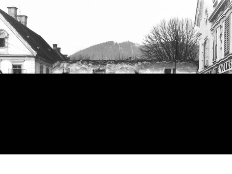 … musste ein Wahrzeichen von Köflach, das uralte Schotthaus (ehemals „Zapfelhof“), dem immer stärker werdenden Durchzugsverkehr weichen. Der Gemeinderat beschloss, an der Stelle des abgetragenen Schotthauses in Verbindung mit einem Teil des Schulhofes eine schöne Parkanlage als Beitrag zum „Erzherzog-Johann-Jahr“ zu schaffen.